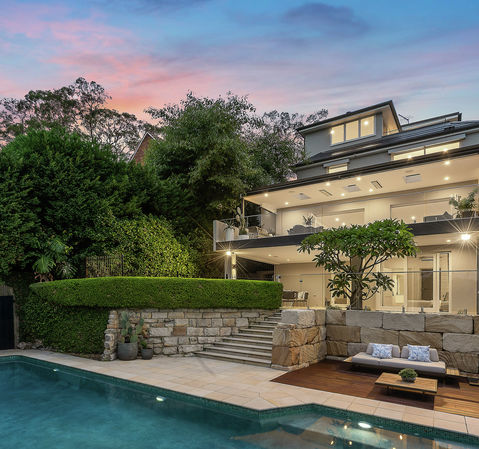 Boasting up to seven generous bedrooms there are multiple accommodation options available. The impressive top floor parents’ retreat, spanning interconnecting rooms and a private balcony, capturing water glimpses and a Harbour Bridge cameo. Luxuriate in the bathtub of the spa-like ensuite while enjoying the view. There’s also a full bedroom suite on the ground floor, ideal for guests.